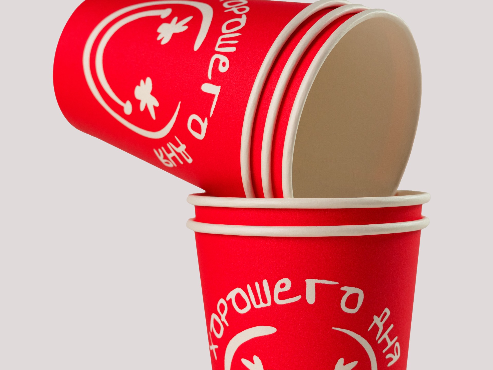 Однослойные и двухслойные бумажные стаканы. Изготовлены из картона Монди плотностью 220 гр/м².